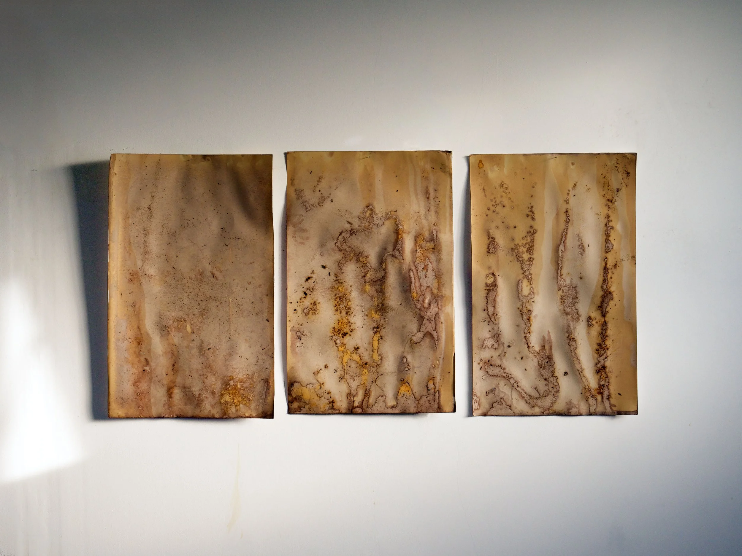 3 @ 18”x28”, Paper, vinegar, rust, floor detritus